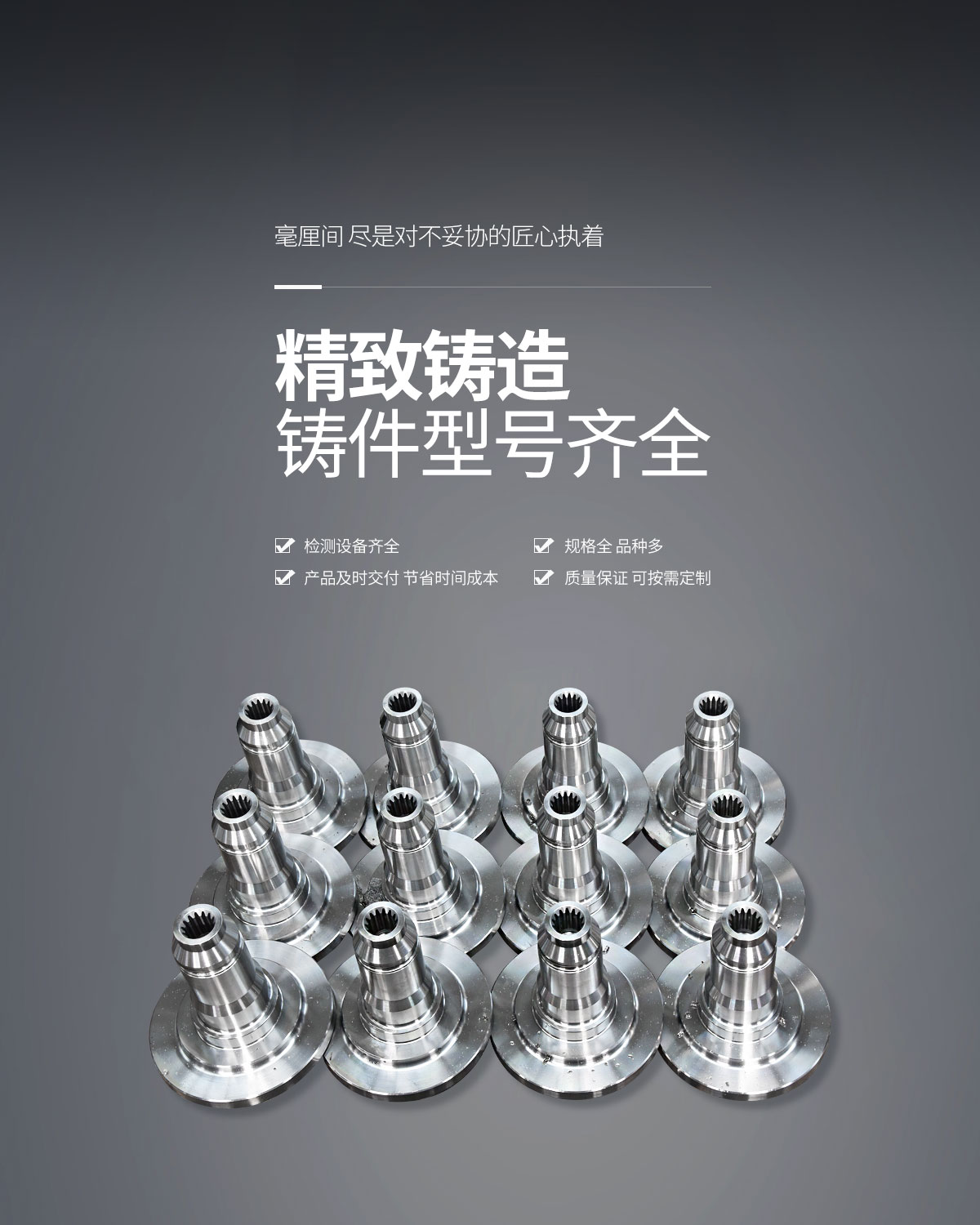 我公司配備全通道光譜分析儀、碳硫分析儀、金屬金相分析儀、洛氏硬度計、溫度檢測儀等檢測化驗設(shè)備和30多臺機加工設(shè)備,確保了造型、澆鑄、加工、熱處理、檢測各個環(huán)節(jié)的質(zhì)量。我們采用現(xiàn)代化的質(zhì)量管理和嚴格的企業(yè)管理制度,率先通過了ISO9001質(zhì)量體系認證和TS16949管理體系認證,確保了產(chǎn)品質(zhì)量在同行業(yè)中的地位。